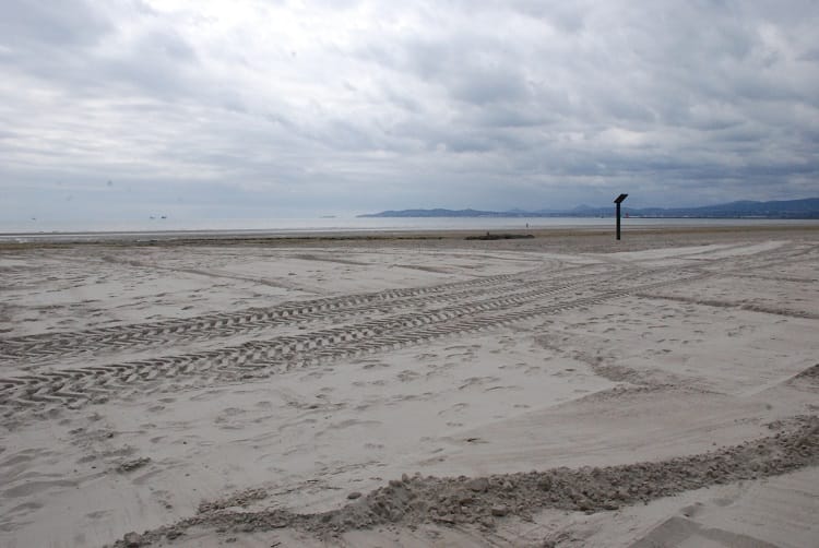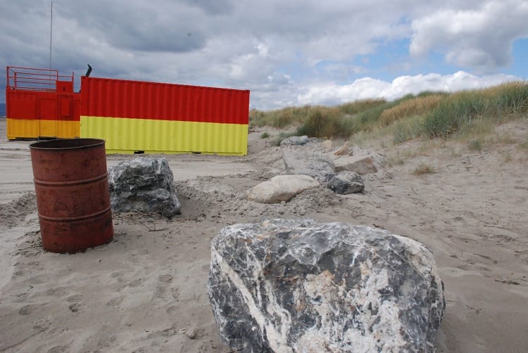 Wind whips up along the strand and echoes off the drum barrels that are used as bins, dotted along the beach.