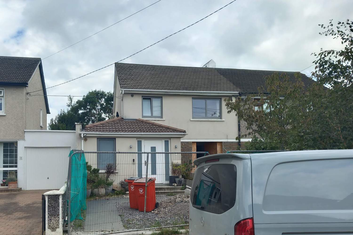 Part of the ground floor of his two-storey semi-detached house was under construction, the front garden fenced off from the footpath, and dug up.