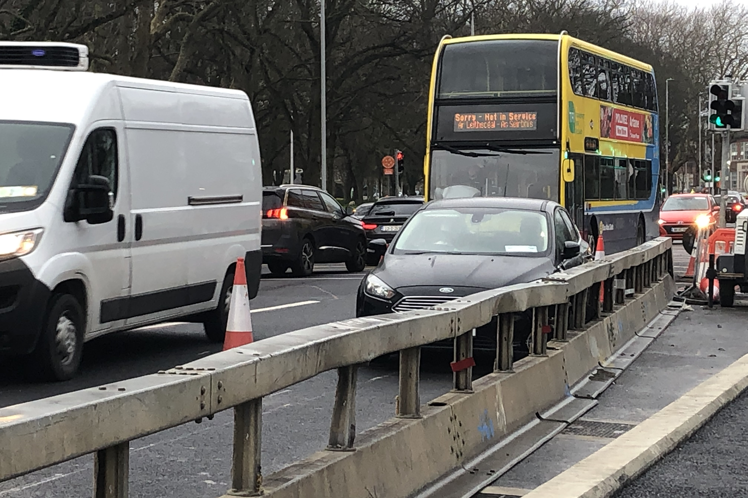 At the moment, as part of the construction works, Howth Road is narrowed from two lanes to one just before it reaches Clontarf Road. That means only half as many vehicles can get through each green light before it changes, Magee says.
