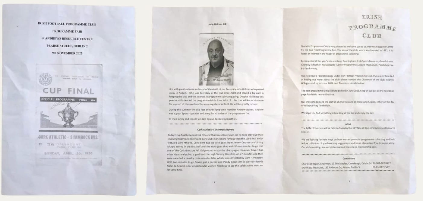 It’s Sunday 9 November and The Irish Football Programme Club is having its annual FAI Cup Final Day Fair.