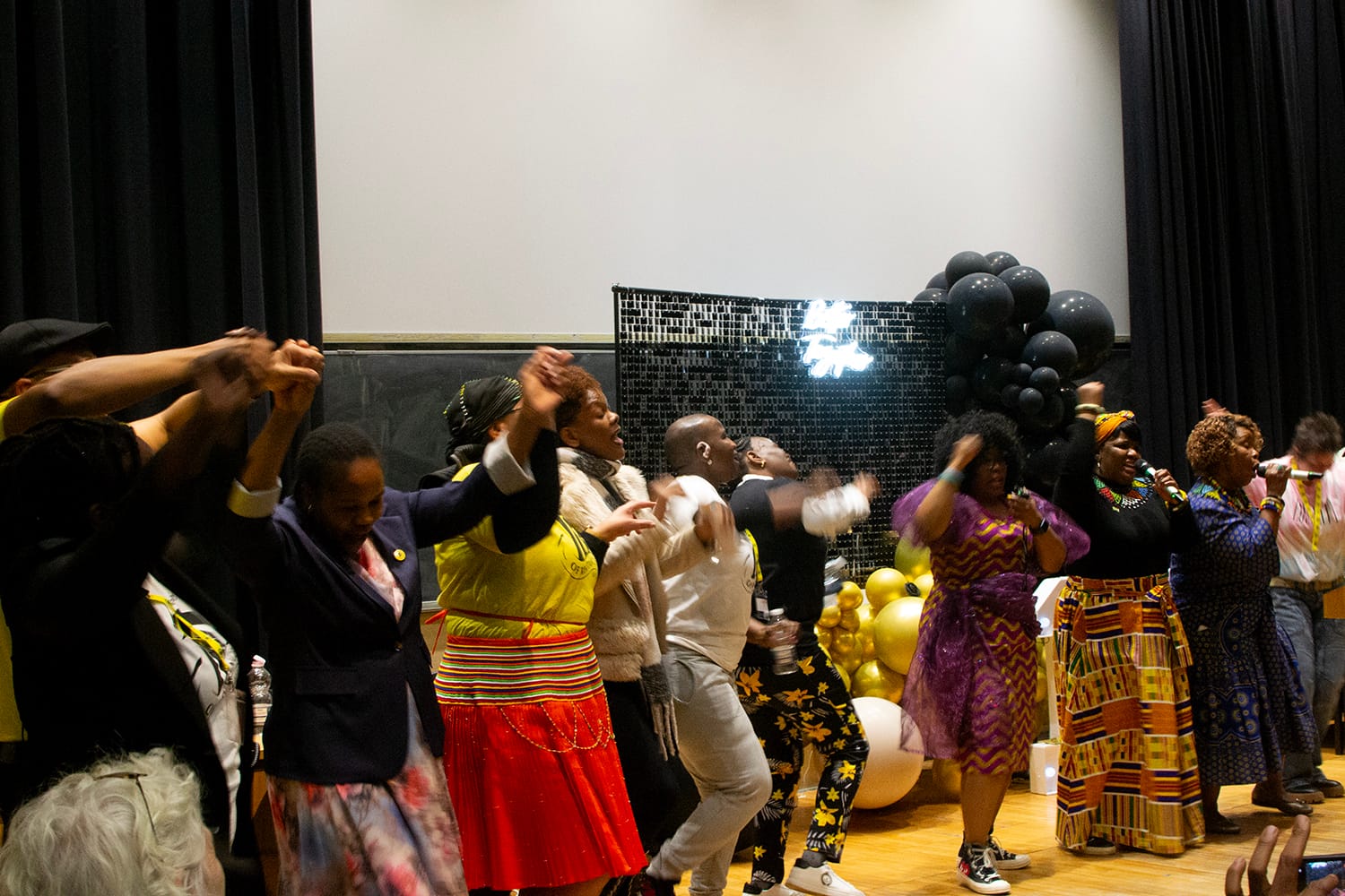 Later, Khambule and two other MASI members cut the cake and clinked glasses. They danced to the melodies of African Queens, a three-woman a cappella ensemble.