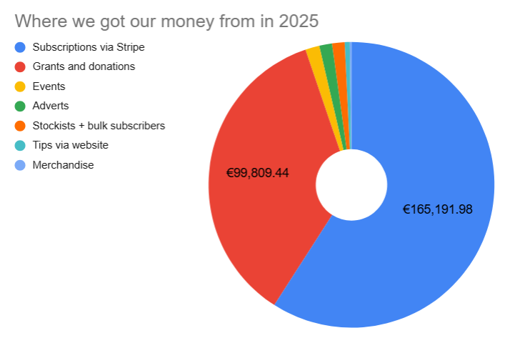 In terms of income, our main source of revenue in 2025 was from readers, via subscriptions (and tips/small once-off donations).