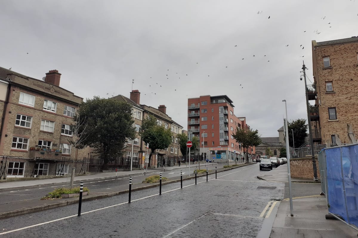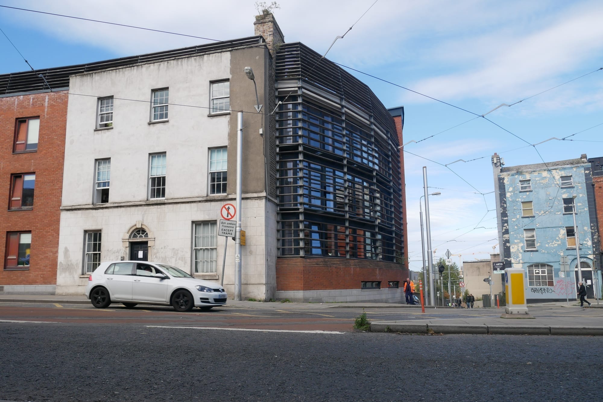Later, Cahill also worked on Sundial House, which sits at the end of James’s Street in the Liberties, as the Luas track curls around the corner to head southwards towards Heuston Station.