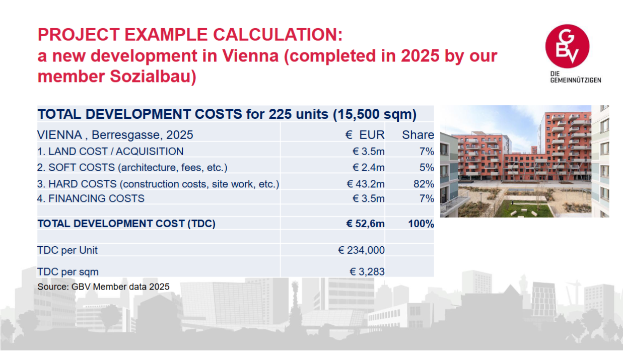 In Austria, housing associations are the developers and have significant in-house expertise, so they avoid many outsourcing fees, he said.