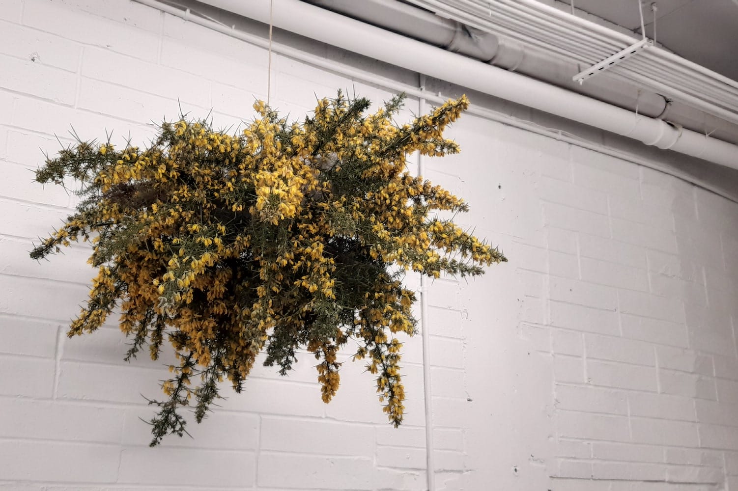 Her installation, “Fragility” was a gorse bush that hung from the ceiling like a cloud, she says.