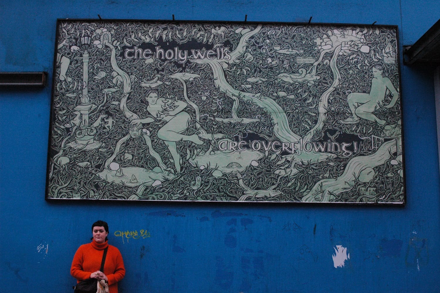 Once she rounds the cobbled bend, Quigley stops outside Project Arts Centre. Plastered across the billboard outside the blue building is her latest work, titled “The Holy Wells Are Overflowing”.