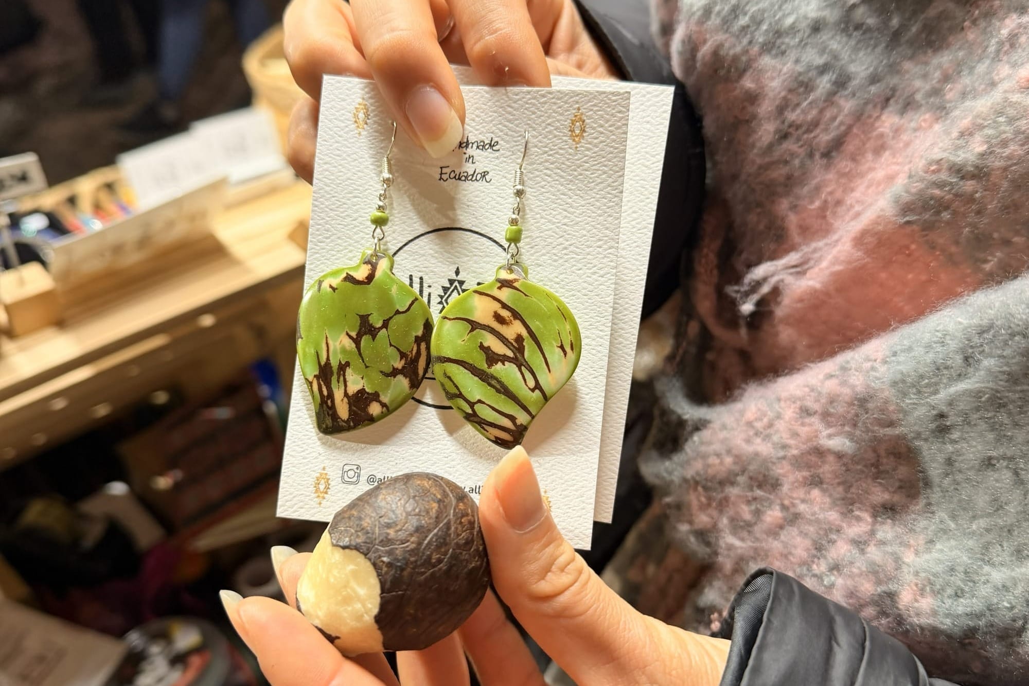 Various artists contributed to the jewellery on display at Arroyave’s stall for her business, Alli Tuta. All of the artists, like Arroyave, are from Ecuador, and make the jewellery by hand.