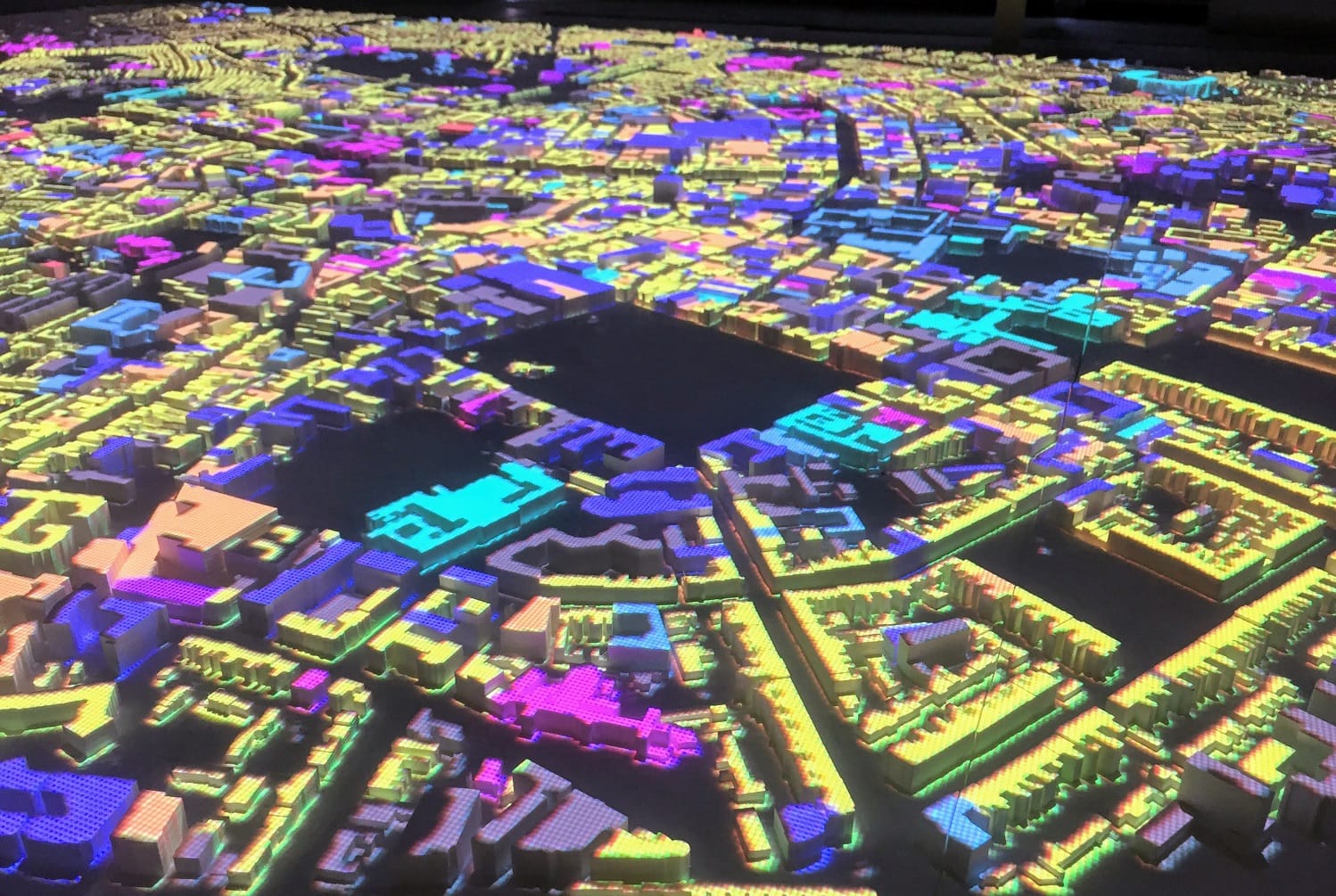 In the five years since they started to grapple with the question of how to present data about the city in an engaging and accessible way, the team has experimented with virtual reality, and augmented reality – and most recently, with this new form of mapping, which blends the lego-like miniature of Dublin’s centre with changeable data projected on.