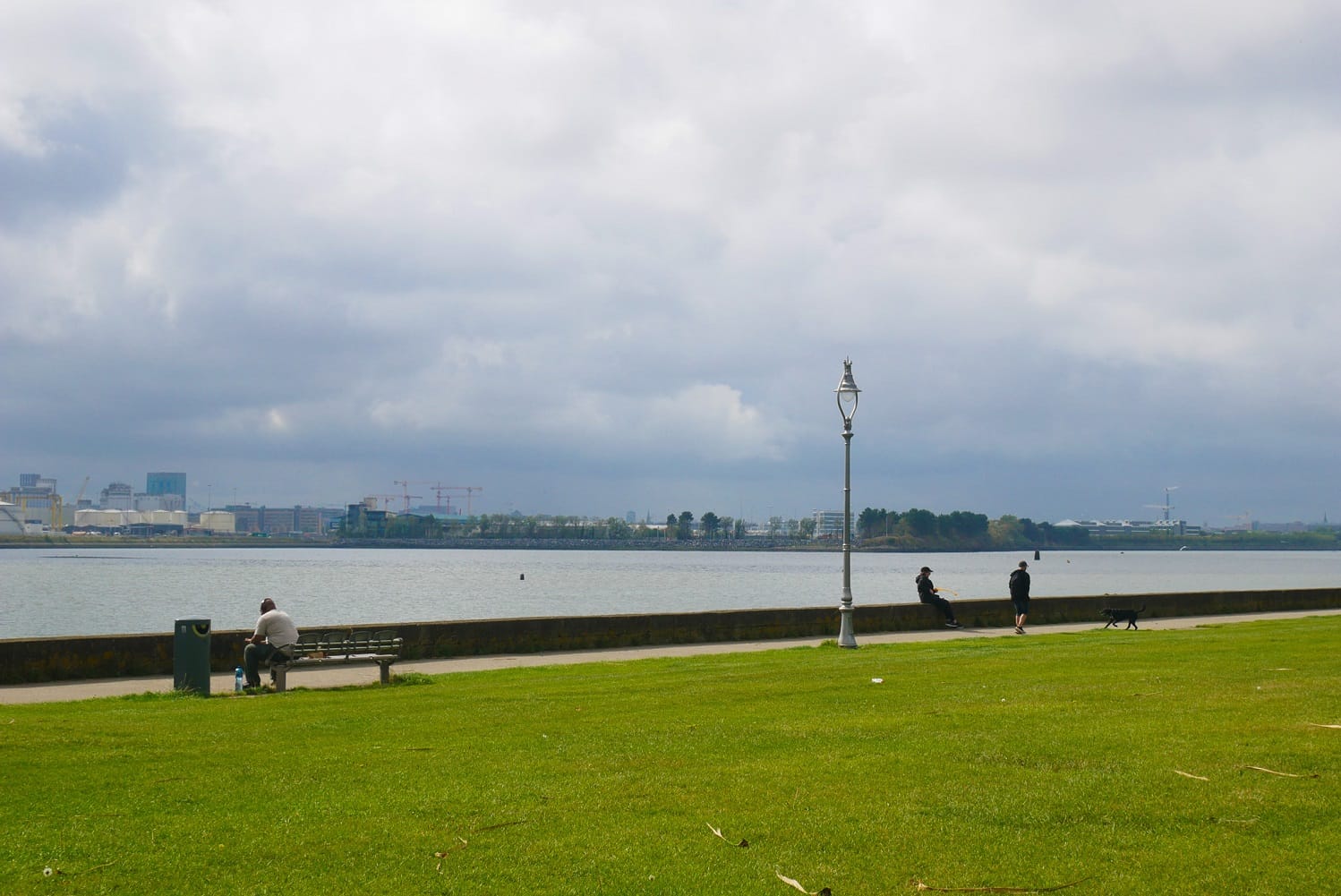 On a bench further up was Billy Bradshaw, a white flat cap on his head, looking to the other side of the estuary and the bulk of a Stena line ship to Holyhead pulling out of Dublin Port.