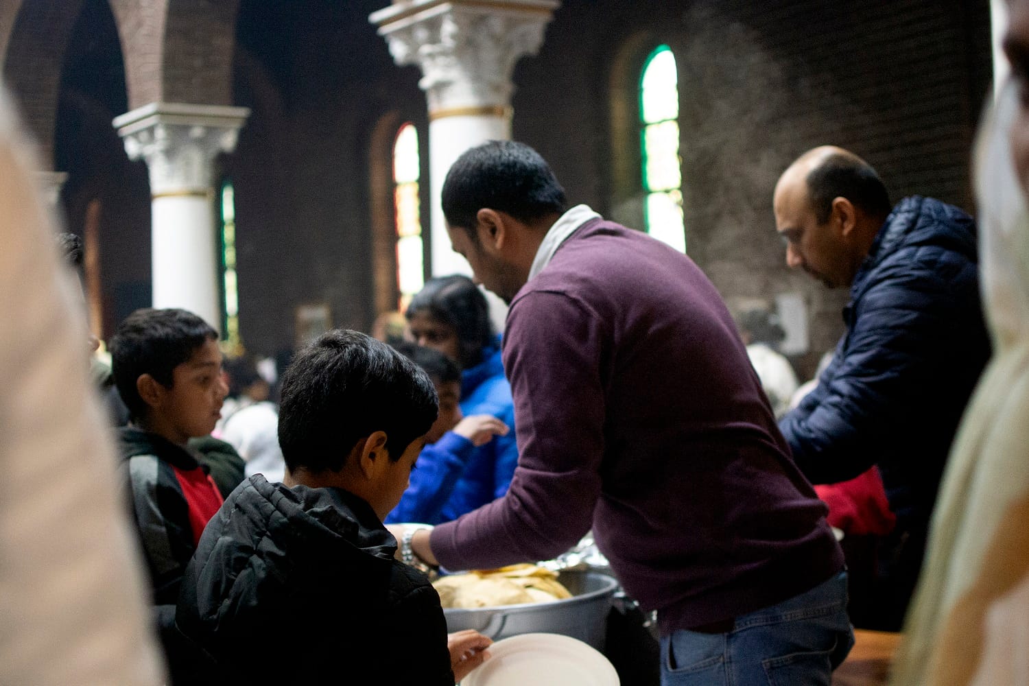 Some took their food outside, and families began socialising in the church’s backyard. Two small boys played hide-and-seek while some older kids talked among themselves in a corner.