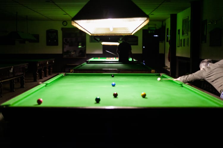 On a Thursday afternoon, two heads peep round the doorway. Both in leather jackets and their mid-sixties, they jocularly approach the counter to collect cues and chalk. One loudly proclaims that the game of snooker is “all a load of balls” and walks off laughing with his partner to proceed.