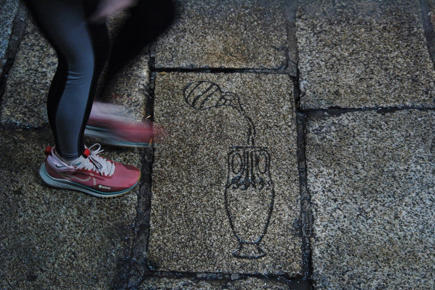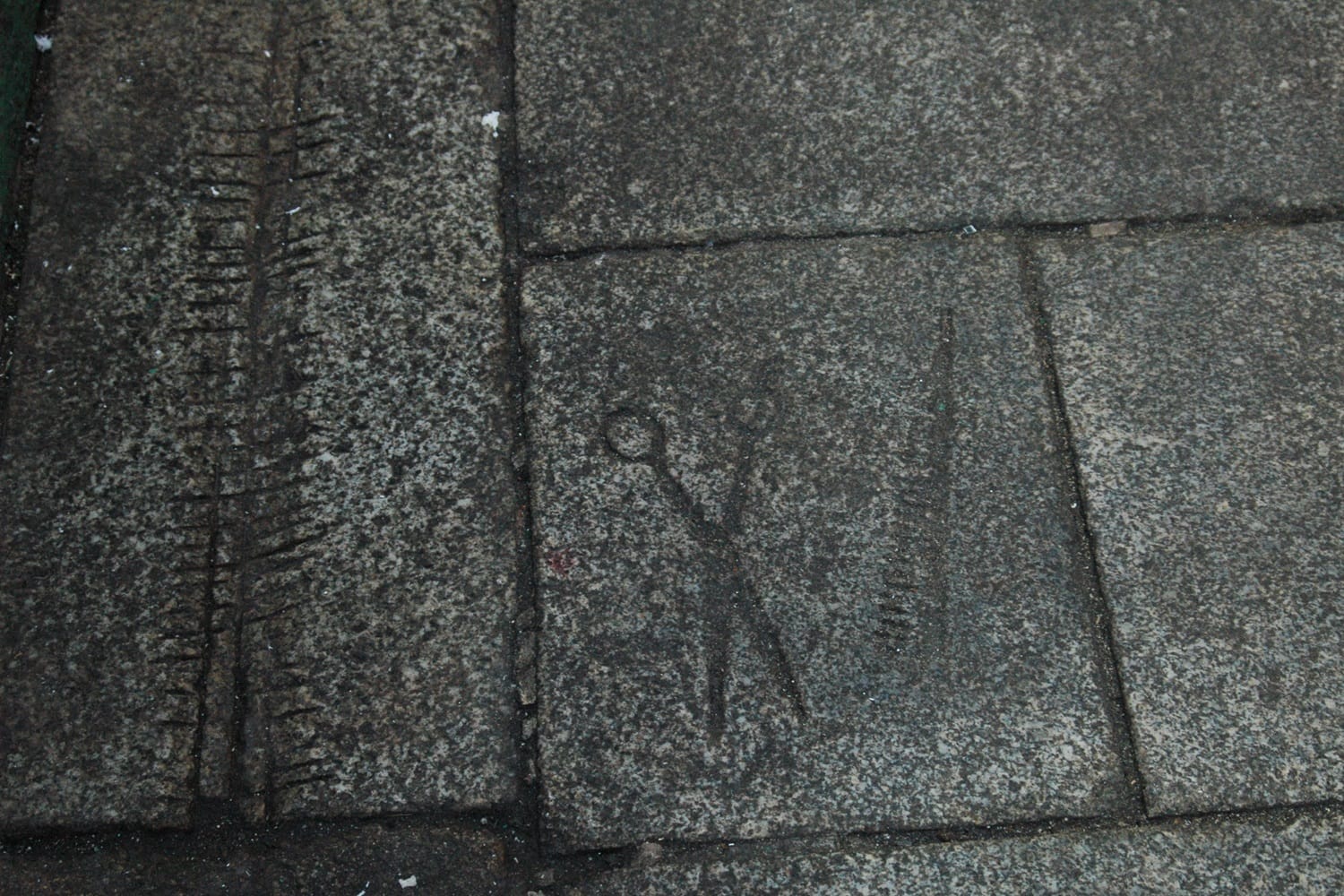 Nearby, at the doorstep of the former Merchant Barbers, which closed in 2017, is a scissors and a comb, and a series of Ogham-like lines cut into a shallow gutter.