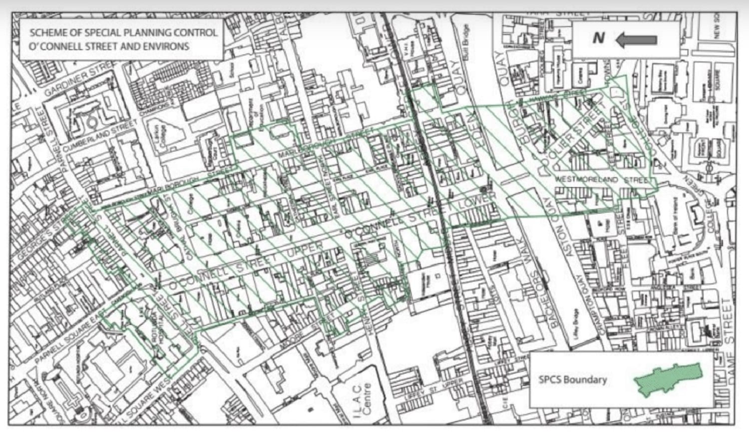 A special planning scheme to control development on a strip of the city that covers O’Connell Street and a buffer of smaller streets to it east and west – and crosses the river to take in Westmoreland Street and D’Olier Street – was first introduced in 2003.