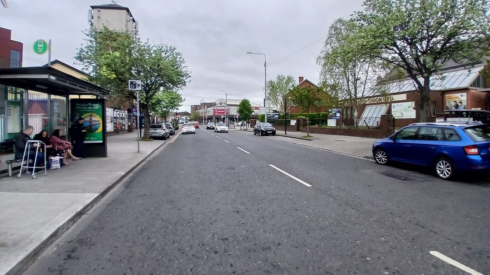 On the right-hand side of the road is Finglas Village Centre, above which a developer is converting the former office building Raven House into 37 build-to-rent apartments.
