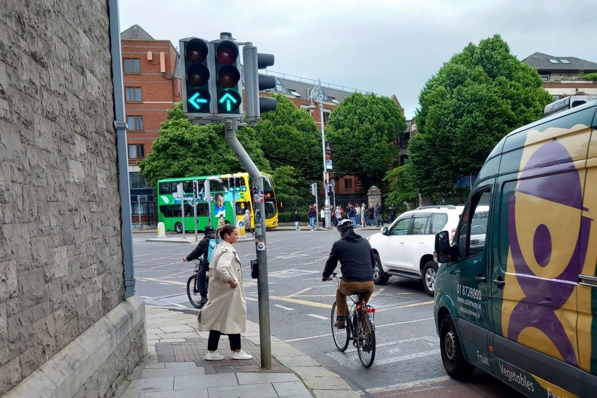 For example, on Saturday 8 April 2023, just after midnight, a woman was cycling east along the north quays and stopped for a light at O’Connell Street, next to an HGV.