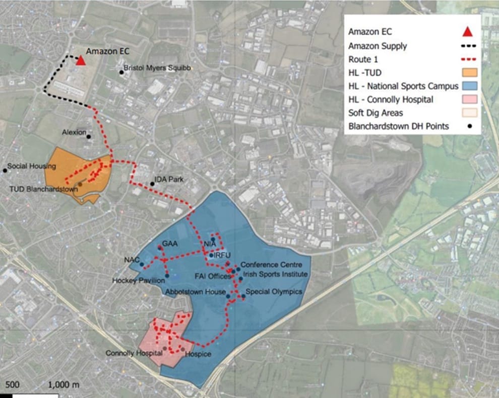 The scheme in Tallaght began by taking waste heat from an Amazon data centre, and using it to help heat the South Dublin County Council County Hall and the TU Dublin campus there.