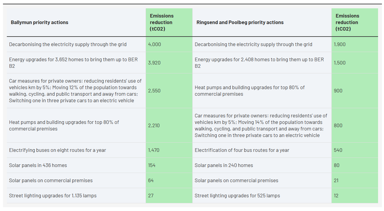 For Ballymun, taking into account population growth, that means slashing emissions by 21,820 tCO2 by 2030, says the report for the northern suburb.