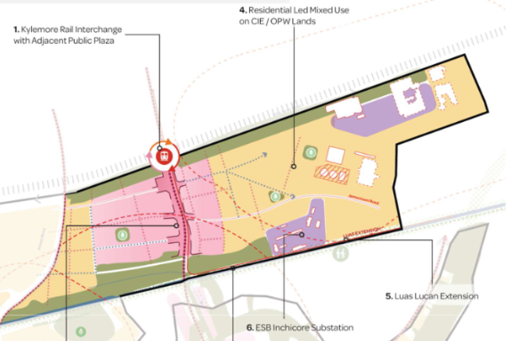 In the plans, at the heart of this district, is a proposed Kylemore Dart Station, on the planned Dart+ South West extension.