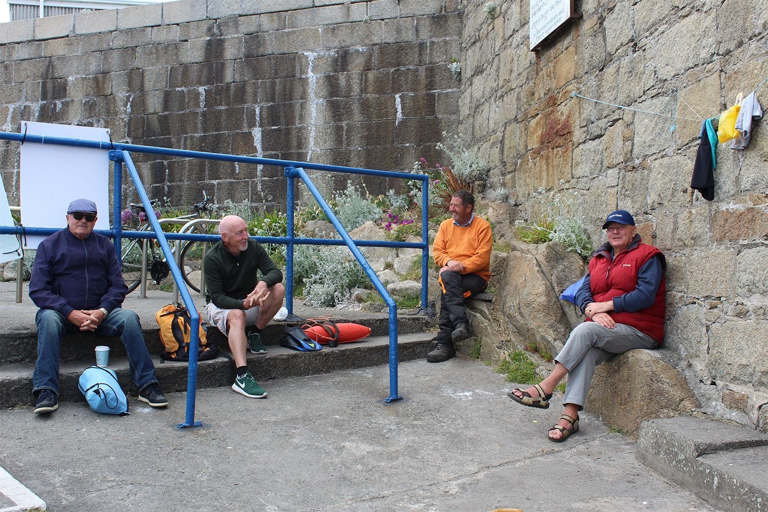 “Hi Pat, take it slow,” says Micheal Forde of the Sandycove Bathers Association, a local swimmers’ group from an undulated seating area carved out of a huge granite boulder.