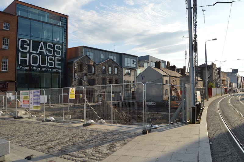 On 12 December 2014, the owners of the plot of baby-blue land were given planning permission for a six-storey mixed-use development. The architect’s elevations make one thing clear: there isn’t enough space between buildings for a bus to run alongside the Luas.