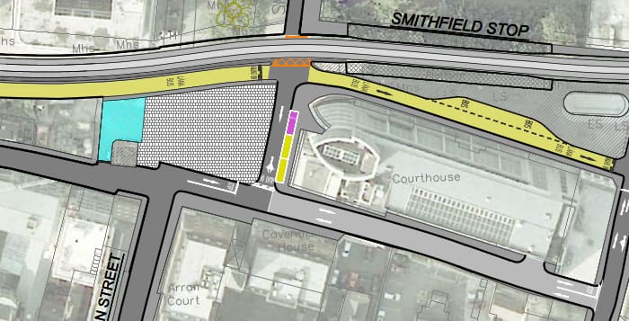 Permission has been granted for a six-floor mixed-use apartment building in Smithfield, right on the plot of land that Option 3’s bus diversion was meant to use.