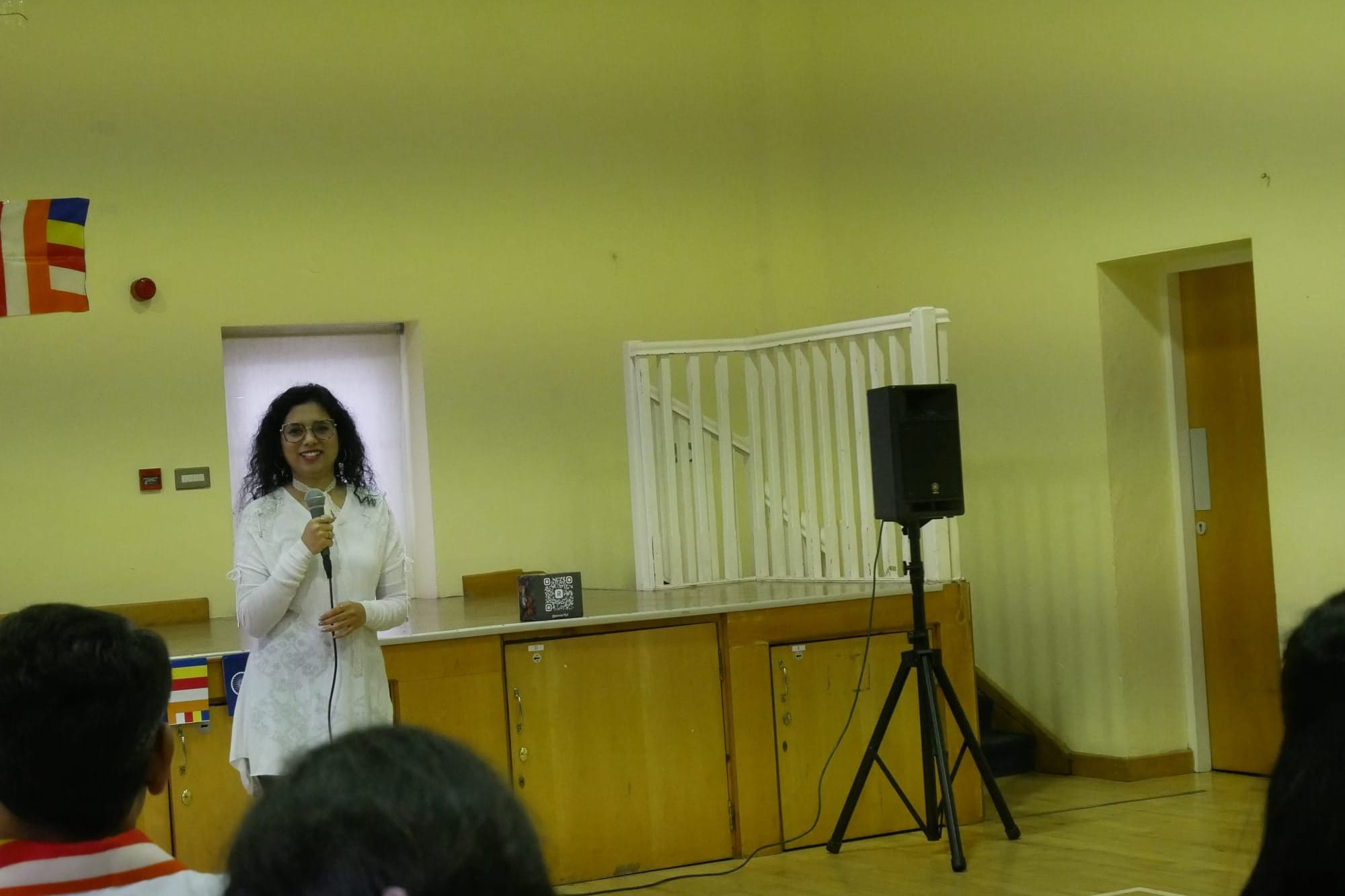 She was overcome the moment she spotted the Buddhist flags around the room, she said. “I’m so happy, so glad to see you guys.”