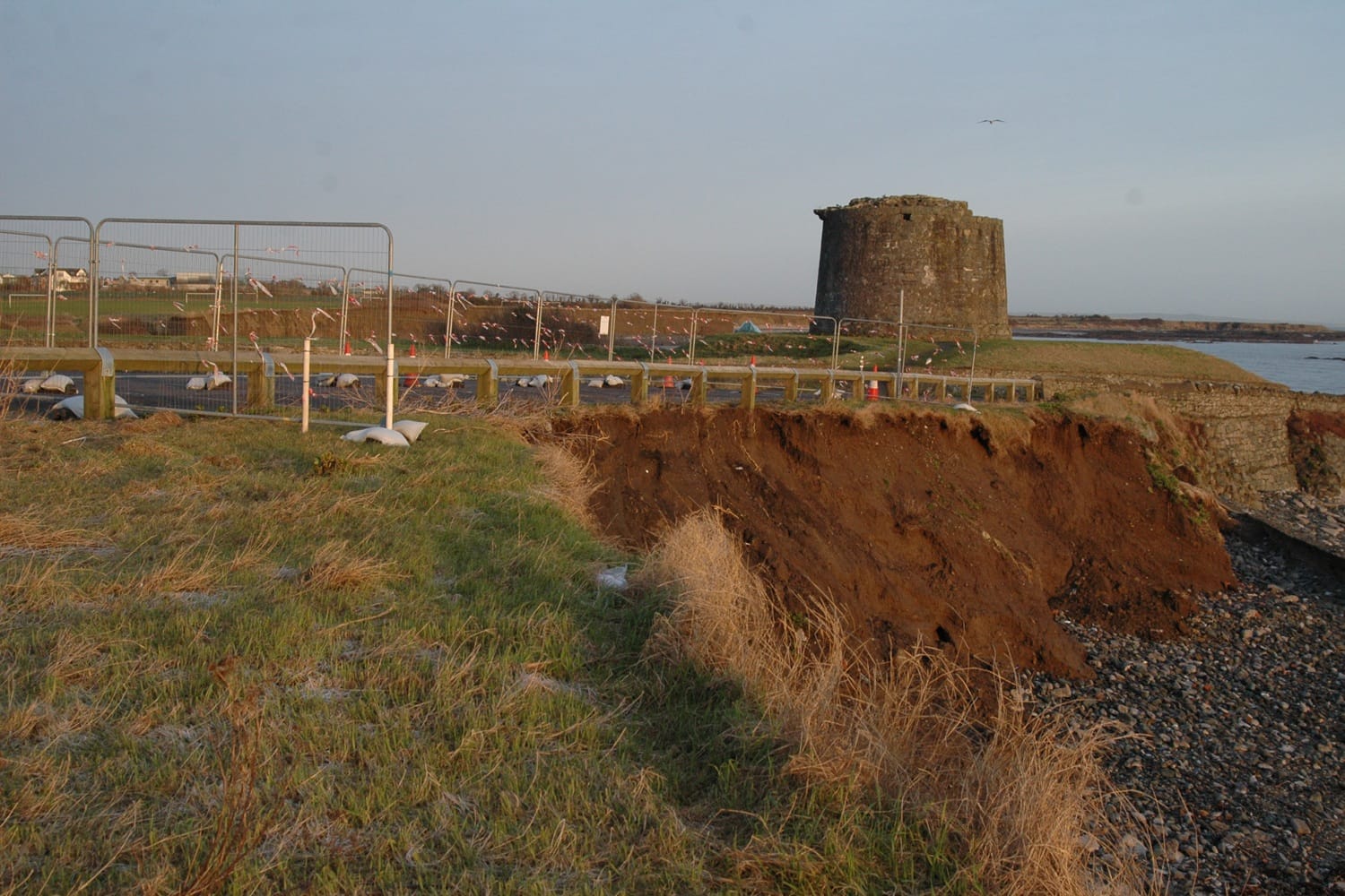 Located beside the Martello Tower, a part of the grassy ledge next to the car park, and overlooking the small rocky beach between Front Strand and Tankardstown Bay had collapsed.