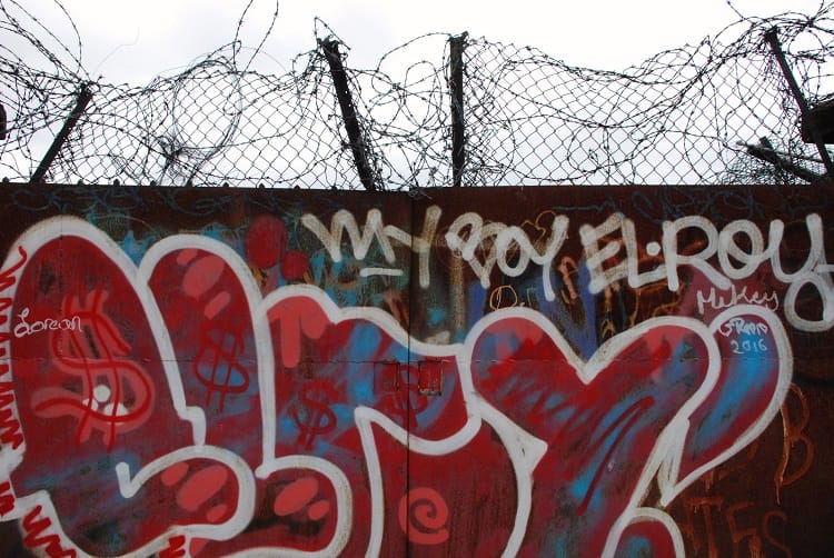 Near where the horses were shuffling, dogs bounded through a small opening in the fence, the boundary between the canal and Labre Park.