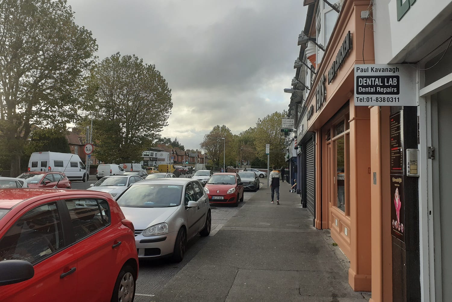 On Thursday, around 30 cars were parked in the two rows of parking in the slip road that leads into the 17 shops. There are also parking spaces on the other side of a strip of pavement next to the Cabra Road, which are mostly full too.