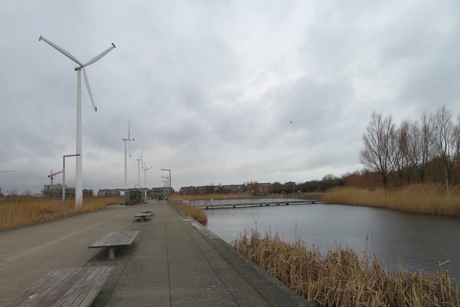 The entrance to the park from Main Street brings walkers directly beside the five wind turbines.