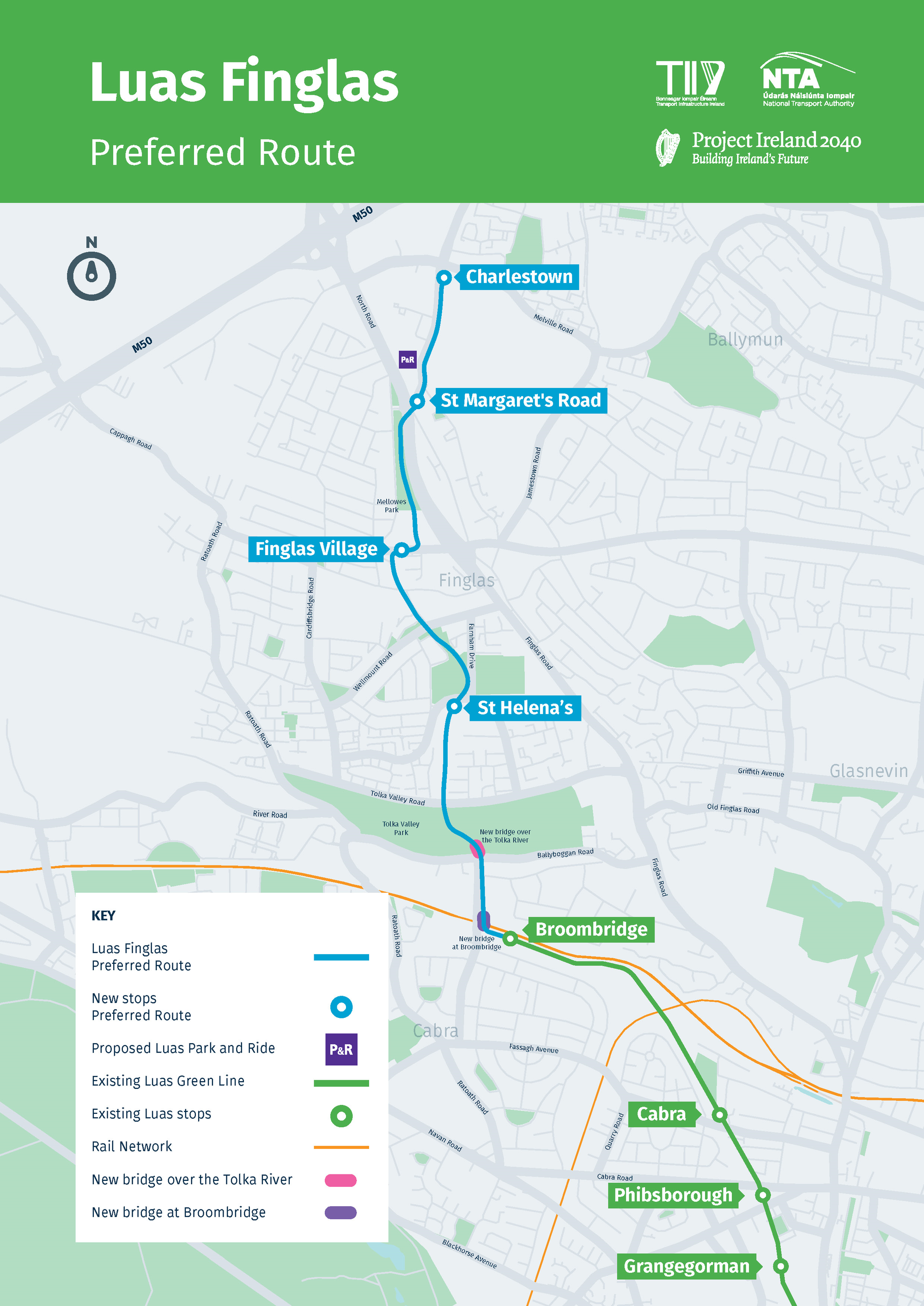 On 7 December, Transport Infrastructure Ireland (TII) put out what it currently says would be the best route for the future Luas Finglas, an extension of the Green Line that would add four stops from its current terminus at Broombridge and bring it all the way to Charlestown.