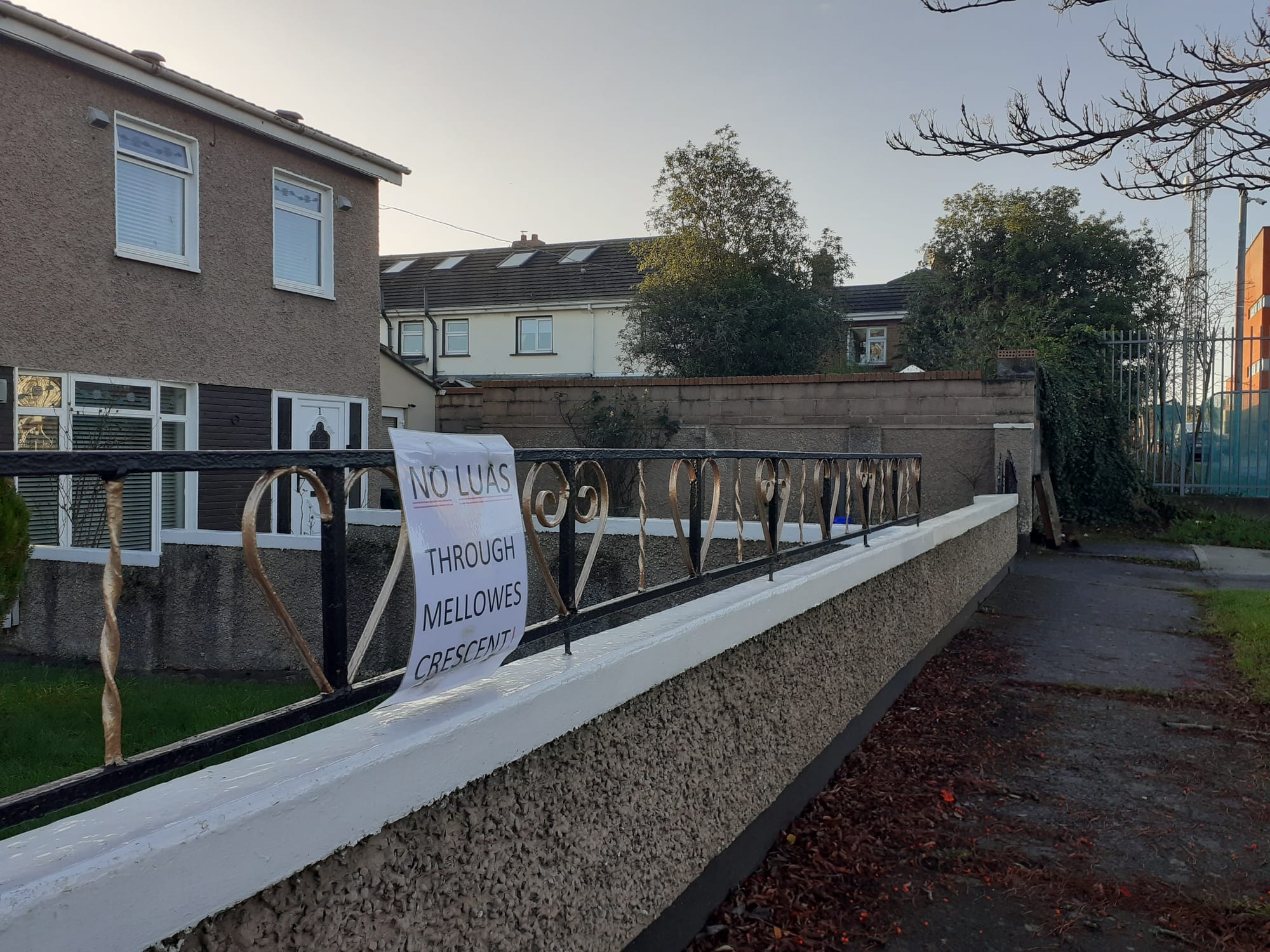 On Friday, in Mellowes Crescent, a housing estate just off Mellowes Road, Tracey Fairbrother had a sign protesting the route in her window.