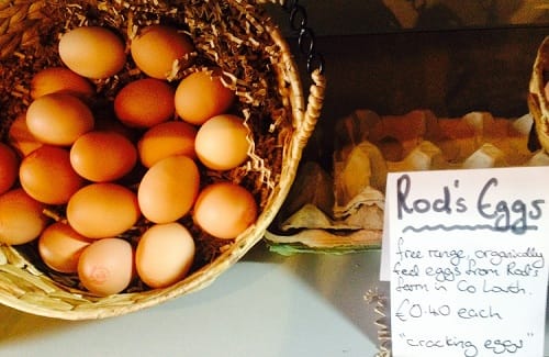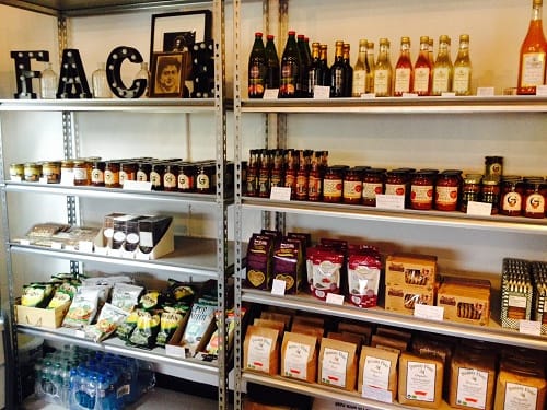 The shelves have a mix of artisanal preserves and pastas, but there are also cartons of milk, loaves of freshly baked bread, a fruit and vegetable display, and individual eggs on sale at 40 cent a pop.
