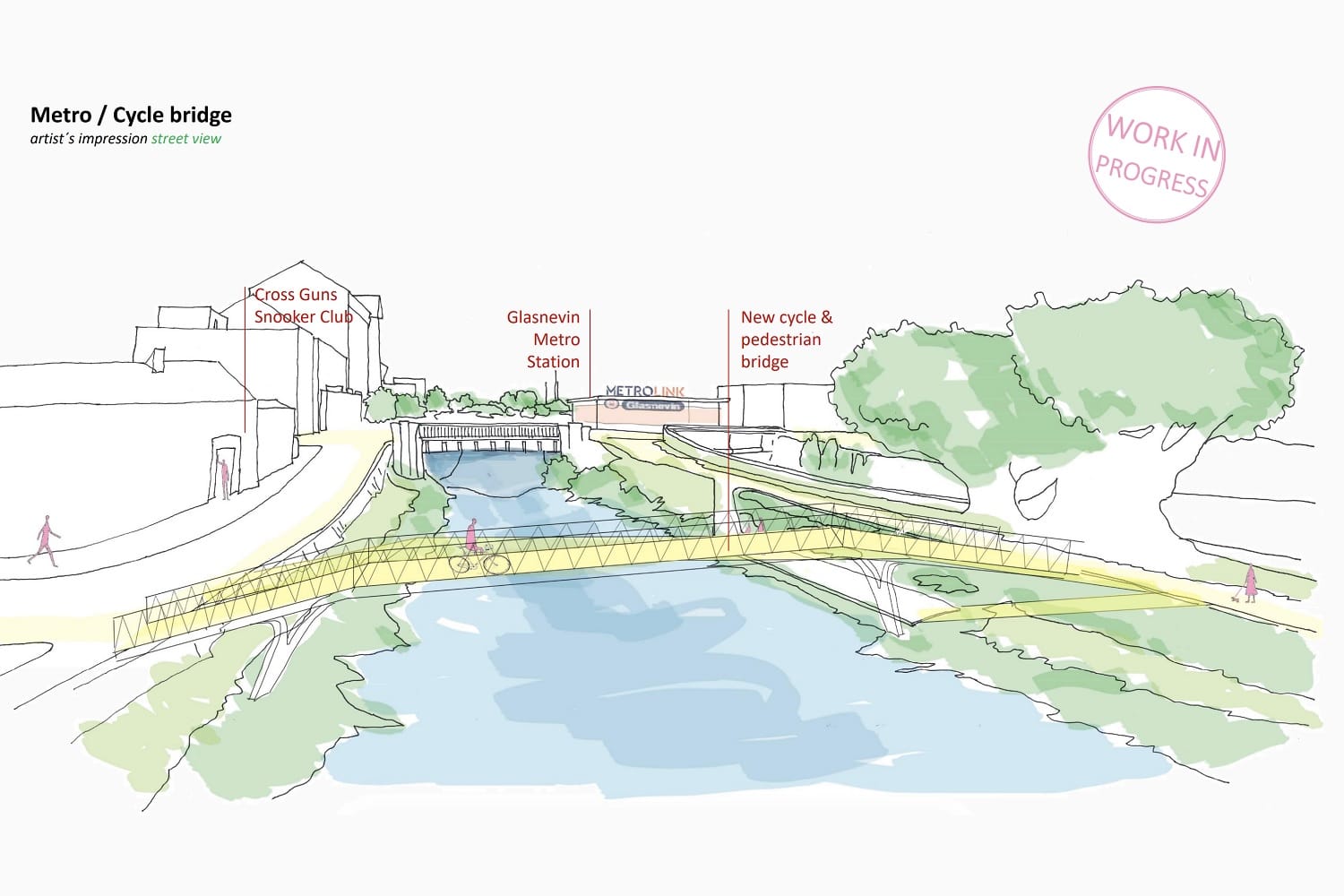 One big change would be a new cycle and pedestrian route. This would run under the North Circular Road at Belacqua Bridge, and around Phibsboro library.