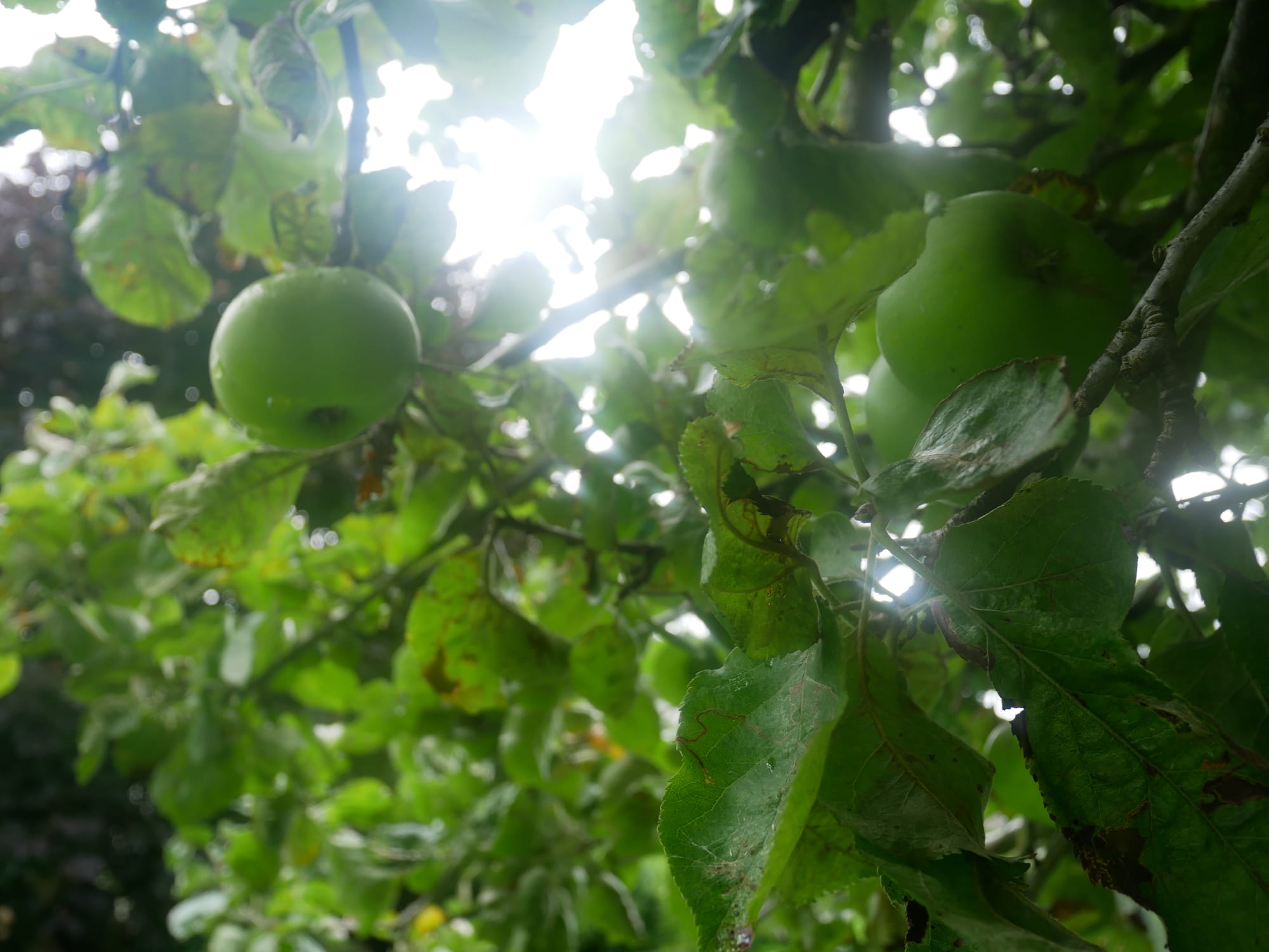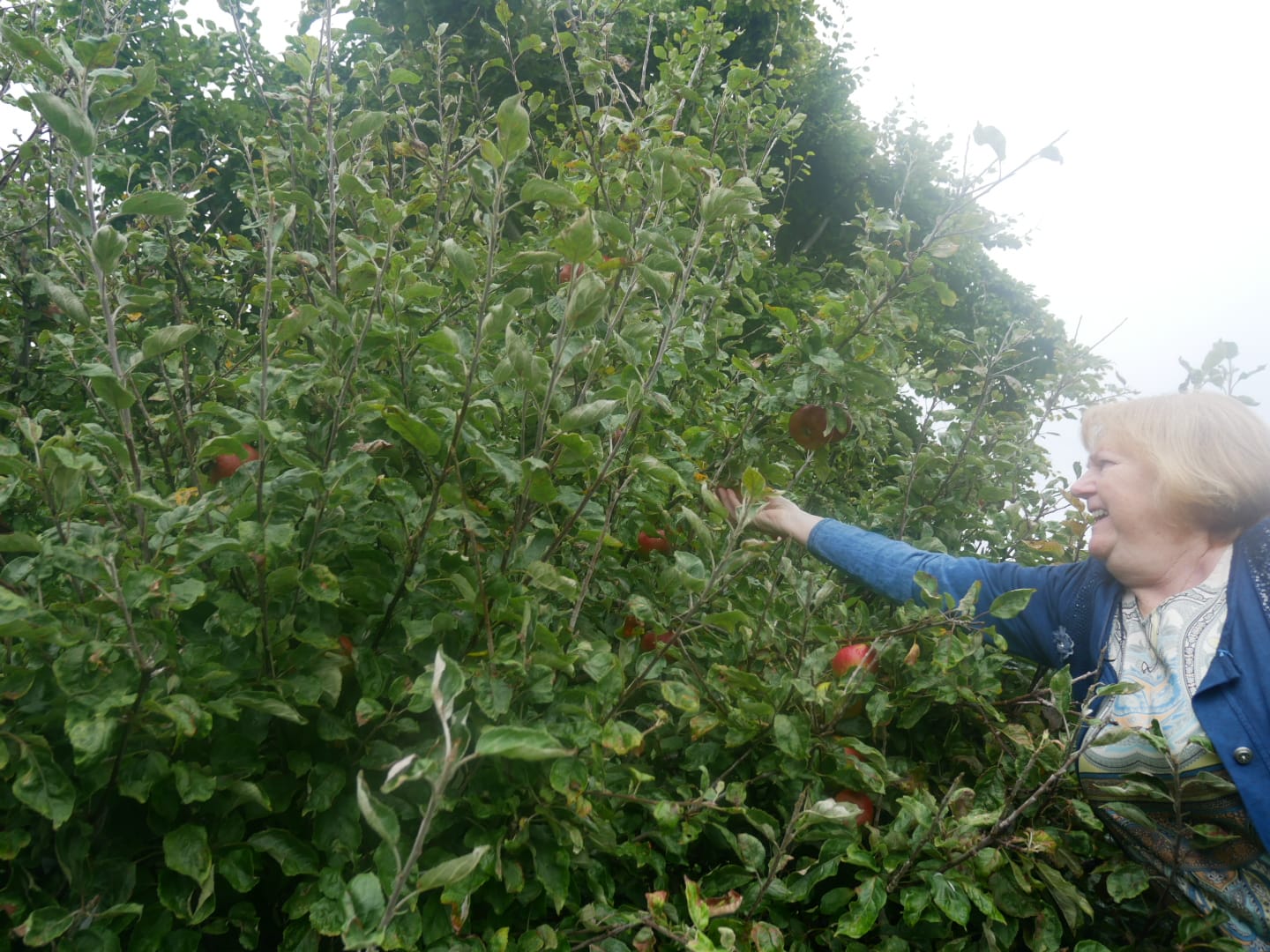 One drips with cooking apples, the other with apples for eating. Last year, she didn’t quite get through the harvest, she says. She had to dump the last of them.