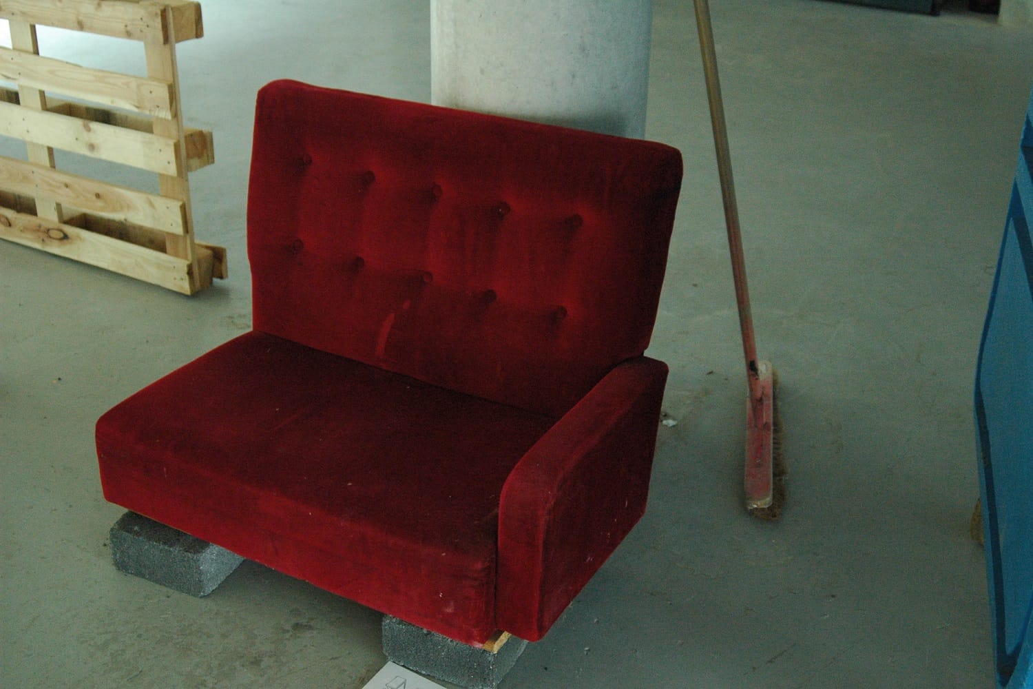 The remnant from the previous two performances is an installation titled “An Couch Pleanála”, a dark red couch, which once belonged to an unknown cinema in the city.