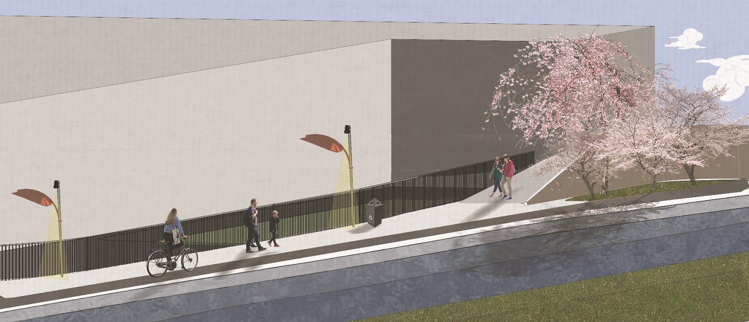 The group had mentioned barriers in the way of the water that mean they can’t feel connected to it, she says. Their new designs show steps down to the water to sit on.