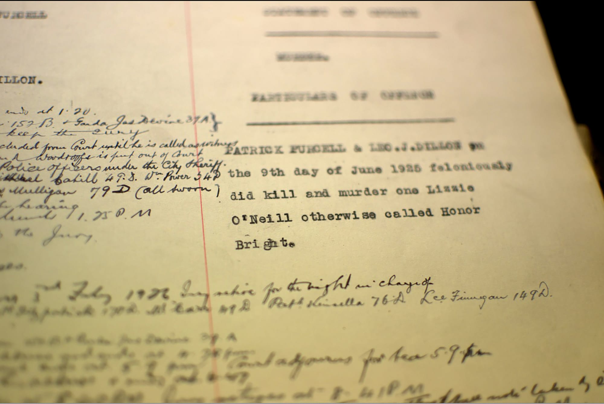 Handwritten records of Lizzie O’Neill’s (Honour Bright) murder trial.