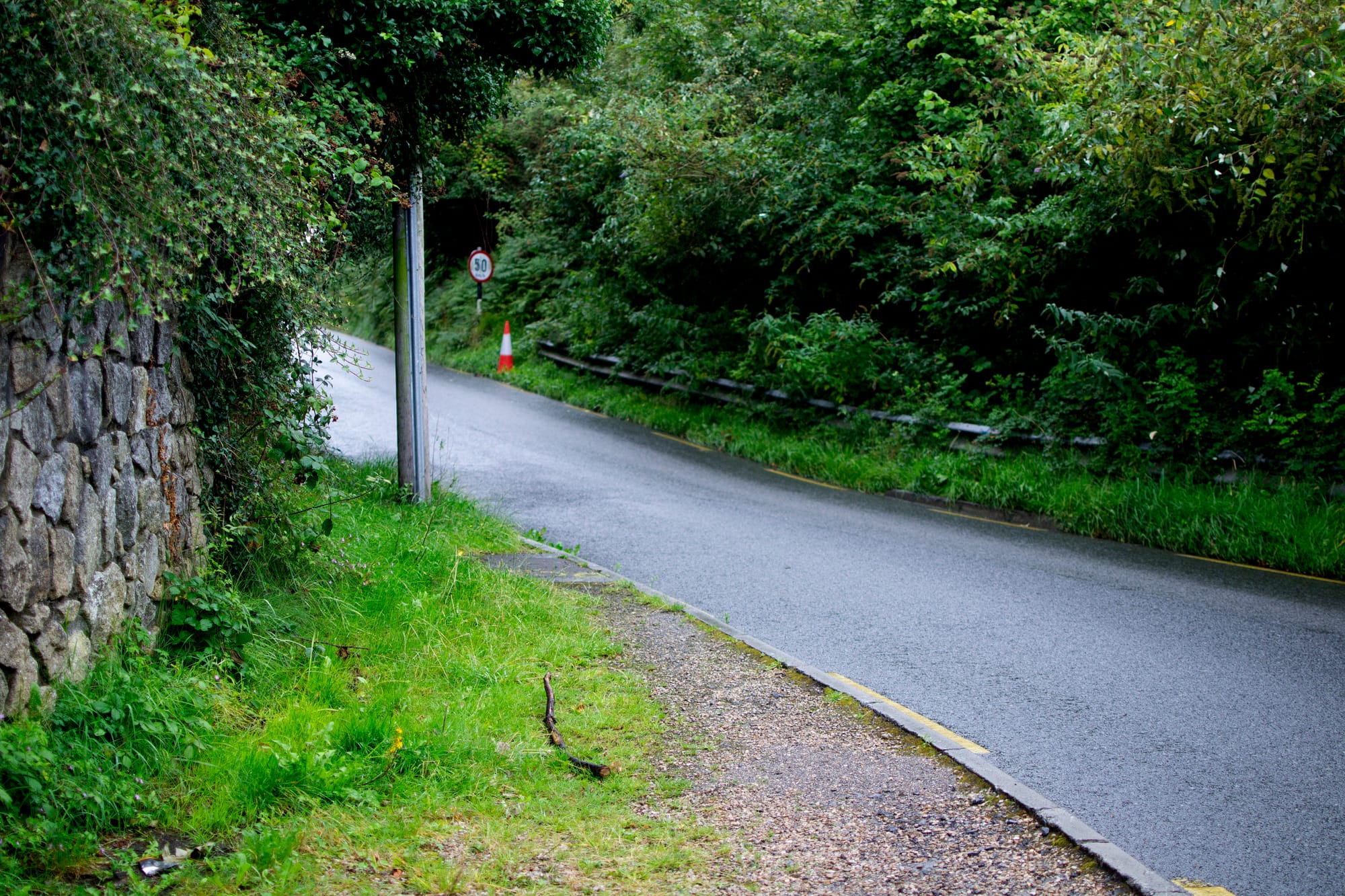 The plaque sits at the base of a big stone wall on Ticknock Road, a narrow carriageway off the busy M50 that winds gently southwards past hedgerows and fields and standalone big houses.