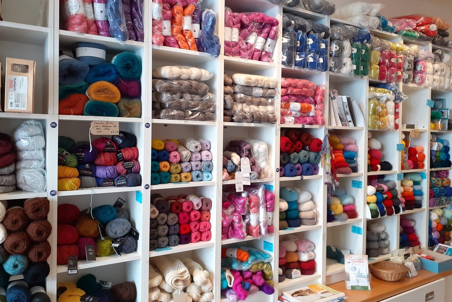 Once inside, Kiasar reaches up and squeezes a few balls of wool piled up on the tall shelves that line the length of the shop, and run from floor to ceiling, in colourful cubby holes like a woollen sweet shop.