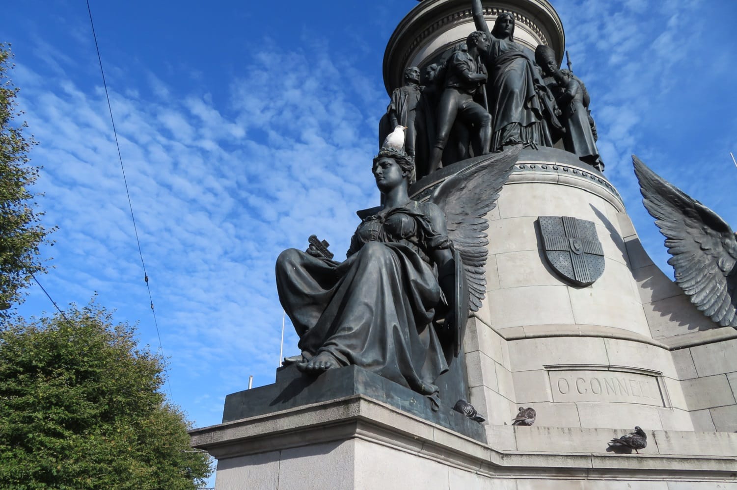 A pool of water has gathered on a ledge, and bird droppings have splattered then solidified atop O’Connell’s head and the heads of each of the four winged figures sitting below him: Patriotism, Fidelity, Courage and Eloquence, according to the National Inventory of Architectural Heritage.