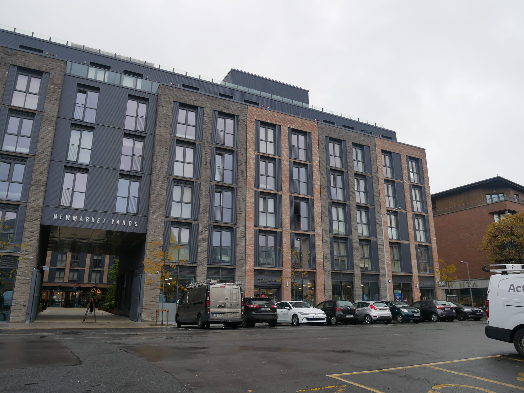 Beside it is a giant complex, the build-to-rent block at Newmarket Yards, with glassy spaces on its ground floor – two empty retail and leisure units, and a Tesco Express.