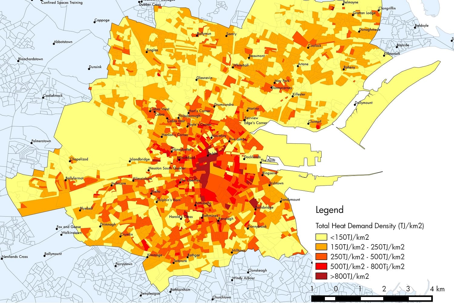 Much of Dublin could eventually be served by district heating, Codema has found after research that drew in census figures, average BER ratings and estimates of heat demand.