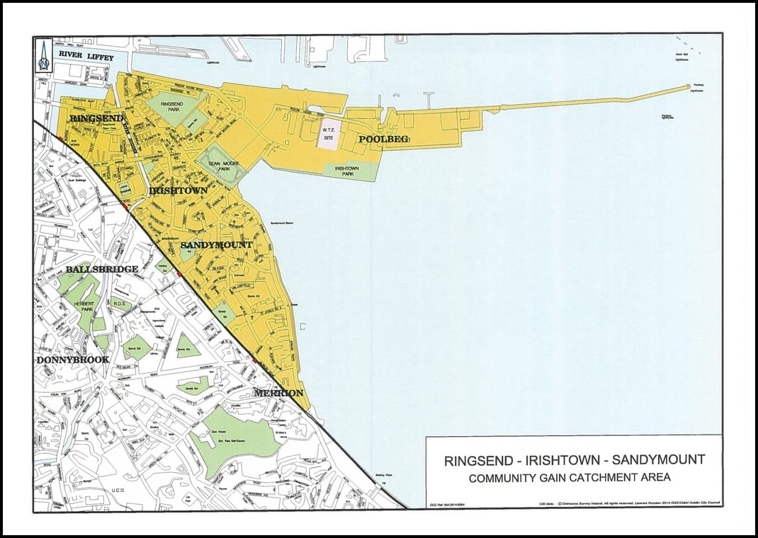 It all sounds dull. Until you realise that over the life of the power plant, millions of euros from this fund will pour into local communities found within a boomerang-shaped catchment area that runs from Ringsend in the north to the southern end of Sandymount, and might be affected by the plant.