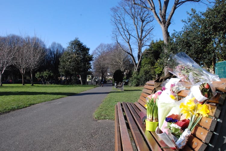 At the bottom of Palmerston Road in Ranelagh, where Boland stood each day before setting off for Herbert Park, there are more tributes. Notes and cards and poems pinned along 16 of the metal railings along the corner.