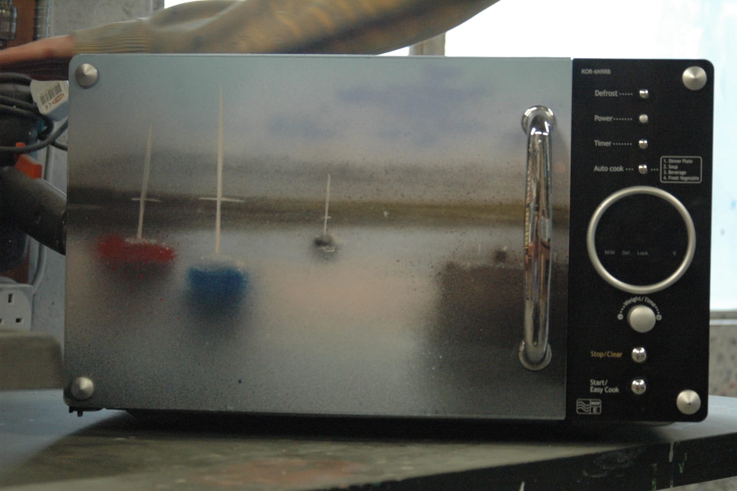 The limits of working on such surfaces gives a different perspective on painting, he says. “You have this thing that you really recognise, and you have to integrate the work into the microwave, and it gives the paintings a new anchor point.”