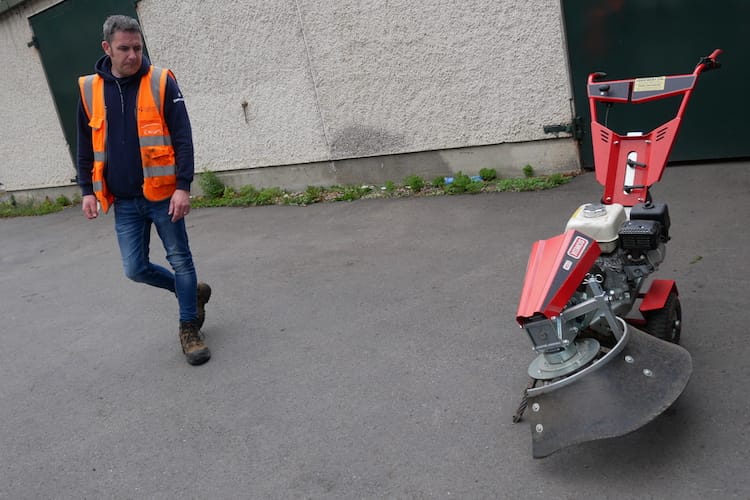 Park staff now have a Mosquito, a machine that looks like a wonky lawnmower and can get the weeds out of cracks in hard surfaces, and along edges. “It does the work of ten people,” he says.