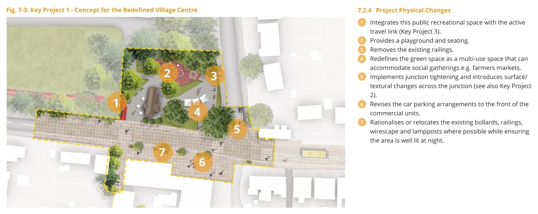 The process of creating a “redefined village centre” will also involve reducing vehicle speeds and revising the current car-parking arrangements to make it nicer to walk around the area.