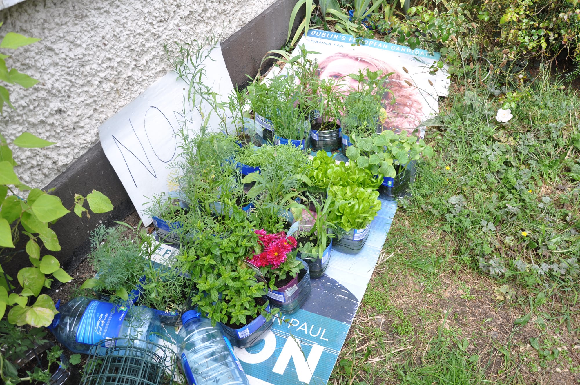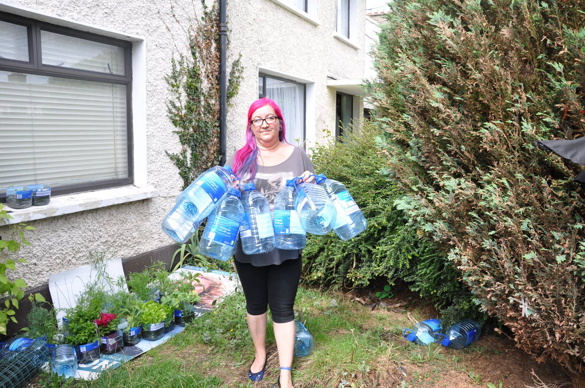 She buys a minimum of thirty litres of bottled water a week. She tries to recycle as many as she can. Beneath her front window, the bases of empty water bottles act as pots in which she grows plants and vegetables.