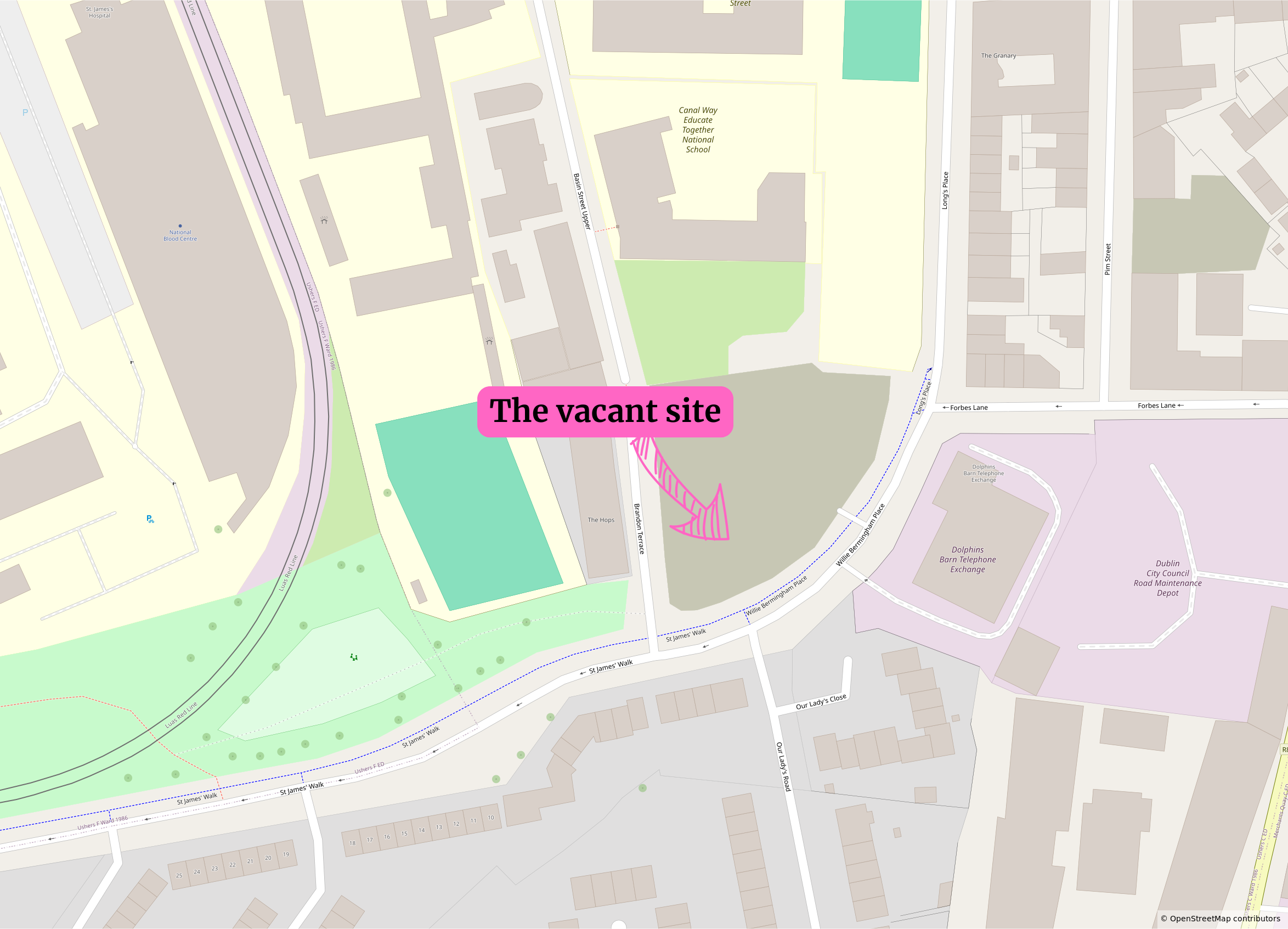 The almost vacant plot, almost 3,000m², is owned by St James’s Hospital.